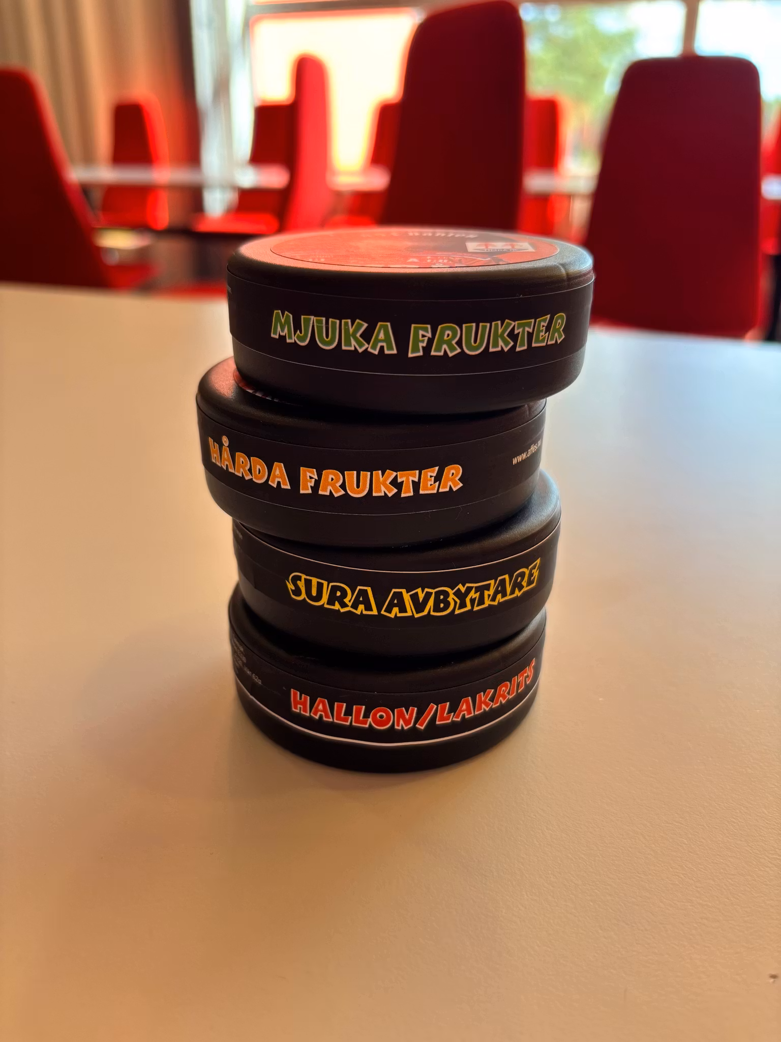 Välj mellan Sura avbytare, hårda frukter, mjuka frukter eller Hallon Lakrits
