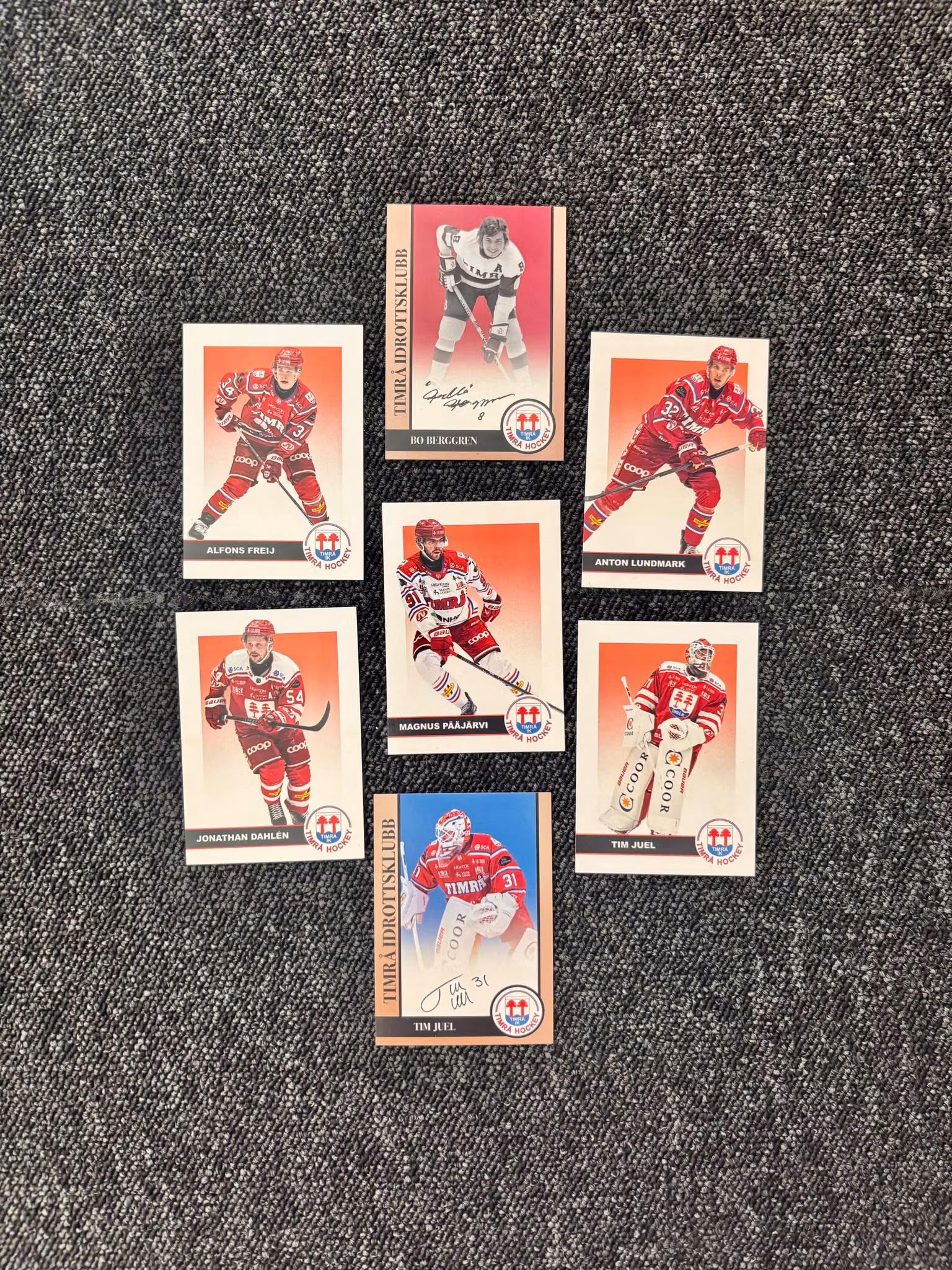 Retro hockeykort! Samla på kort från våra nuvarande spelare samt flera legendarer från Timrå ik allt med retrokänsla! Du har chansen att få ett signerat kort från bland annat Bo "Bulla" Berggren, Roland Westin, Jonathan Hedström, Peter Smedberg och flera andra!